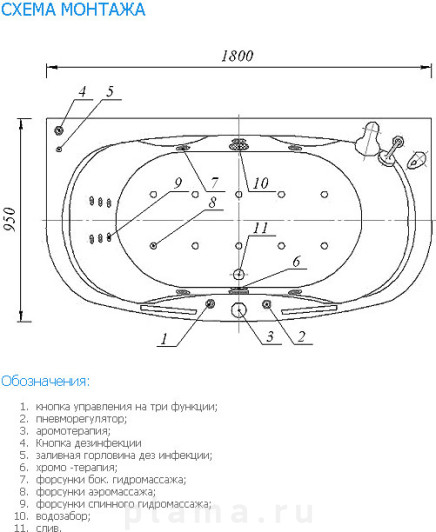 | Аэромассаж | установка по желанию |