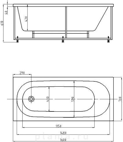 Акриловая ванна Акватек Оберон 160