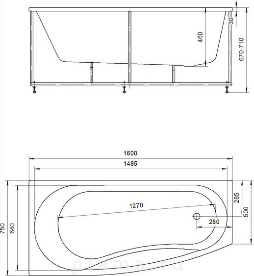 Акриловая ванна Акватек Пандора L