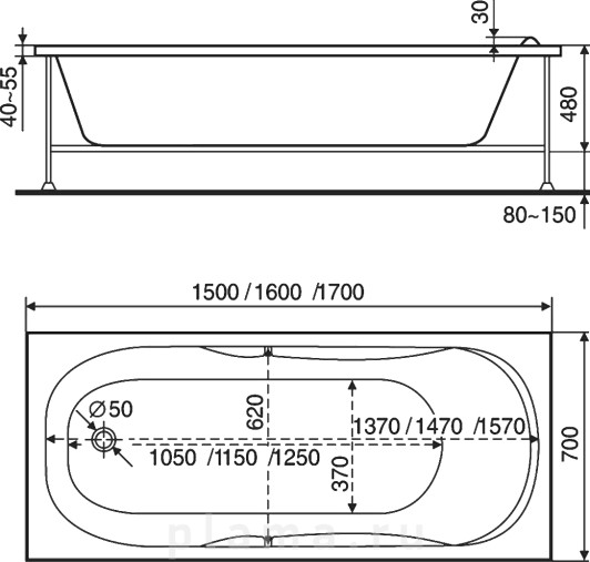 Акриловая ванна Bas Ибица стандарт 150 см на ножках
