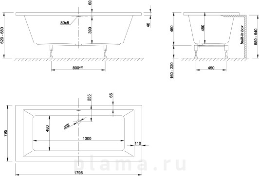 | Расположение перелива | по центру |
