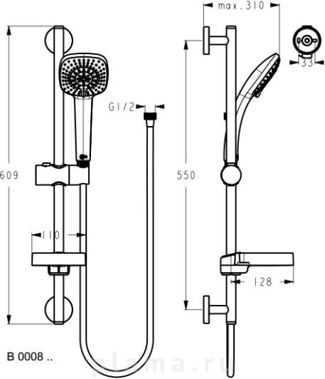 | Состав комплекта | душевая лейка, душевая штанга, смеситель, шланг для душа, HTML |