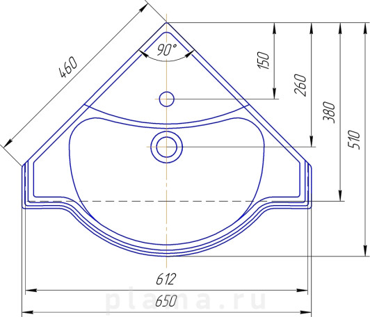 | Форма раковины | угловая |