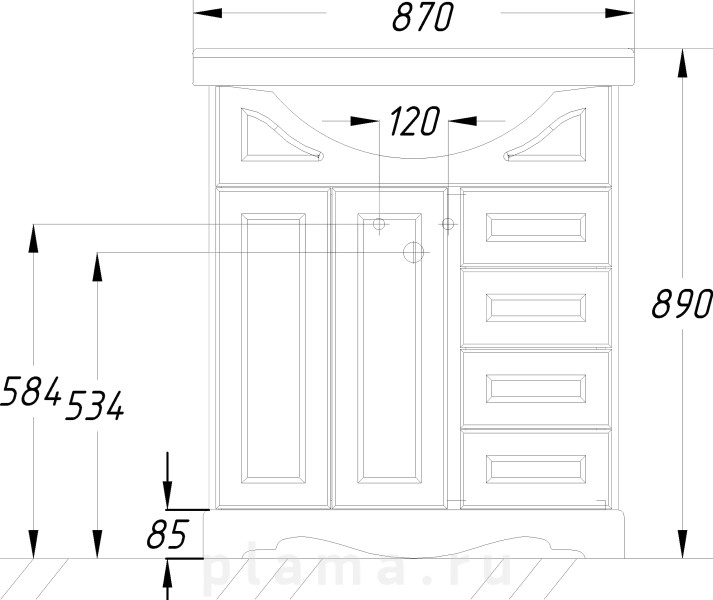 | Доп. элементы гарнитура | зеркало, светильник, шкаф-пенал |