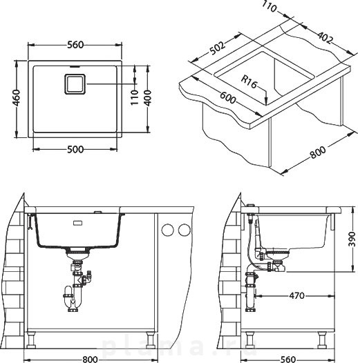 Мойка кухонная Alveus Quadrix Granital 50 steel