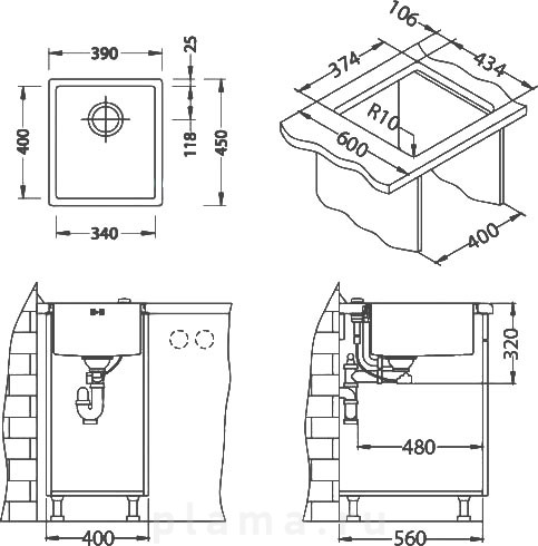 | Оснащение | крепления / сифон |