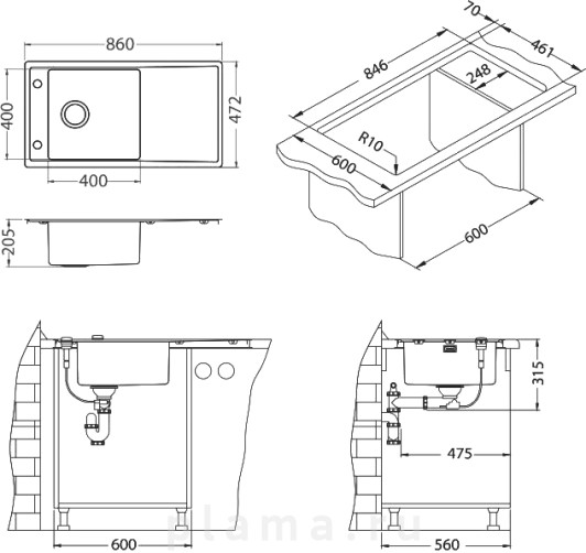 | Намеченные отверстия под смеситель | нет |