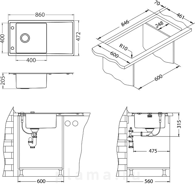 | Монтаж | встраиваемый сверху / интегрированный |