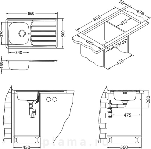 | Намеченные отверстия под смеситель | нет |