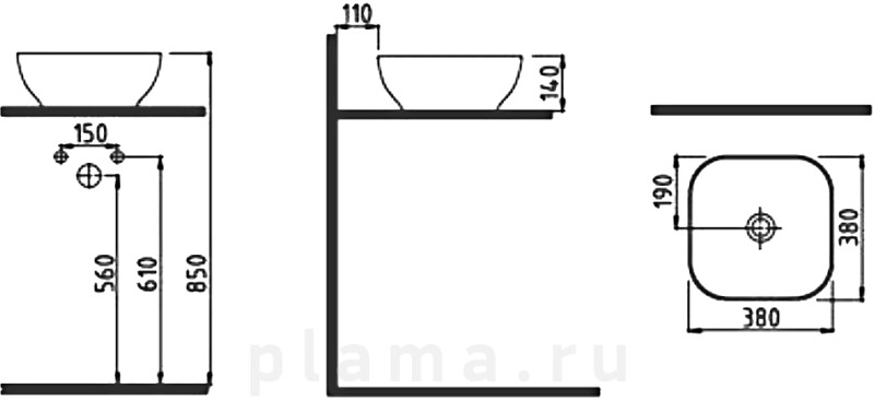 Тип раковины накладная, рукомойник