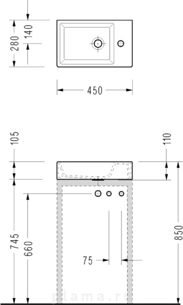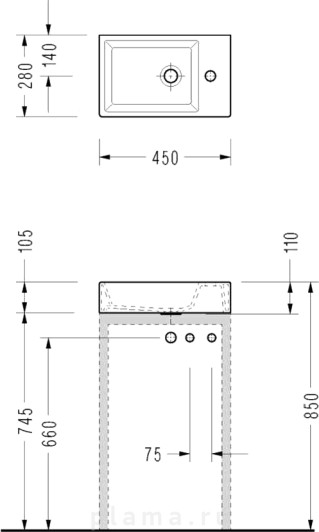 | Намеченные отверстия под смеситель | нет |