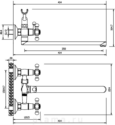 | Оснащение | крепления / душевой шланг / душевая лейка / аэратор / держатель для душа / переключатель потоков |