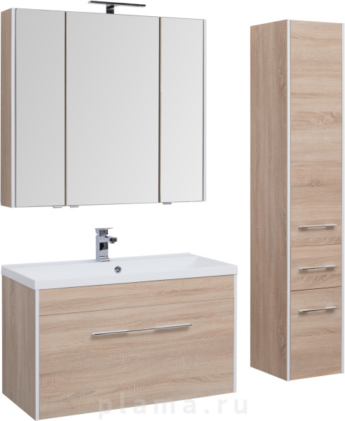 Зеркало-шкаф Aquanet Августа 100 дуб сонома